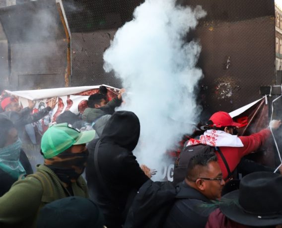 Se manifiestan maestros e intentan derribar barricadas
