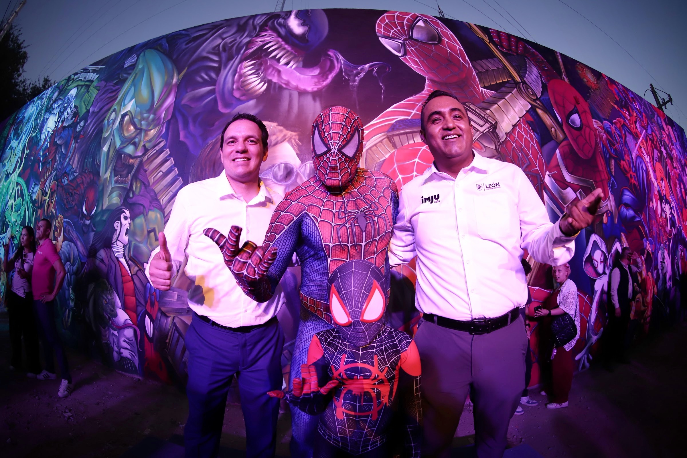 En la develación del Spiderverse estuvieron presentes el director del IMJU, Ismael Zúñiga; el de Sapal, Enrique de Haro; el de Salud, Juan José Bustamante, así como la síndica Leticia Villegas y los regidores Liz Árciga, Araceli Escobar y Ramón Hernández.
