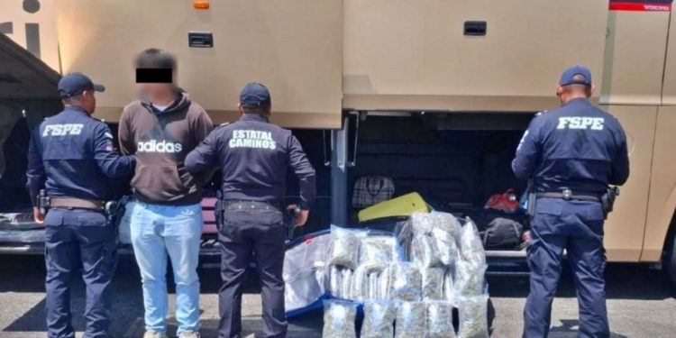 SALAMANCA, GTO. – Elementos de la Policía Estatal de Caminos detuvieron a un hombre que transportaba más de 23 kilogramos de presunta marihuana ocultos en su equipaje mientras viajaba en un autobús de pasajeros.