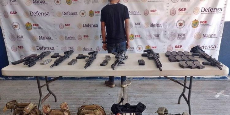 VERACRUZ.- Cuatro personas, ente ellas un menor de edad, fueron detenidas con un arsenal y equipo táctico.