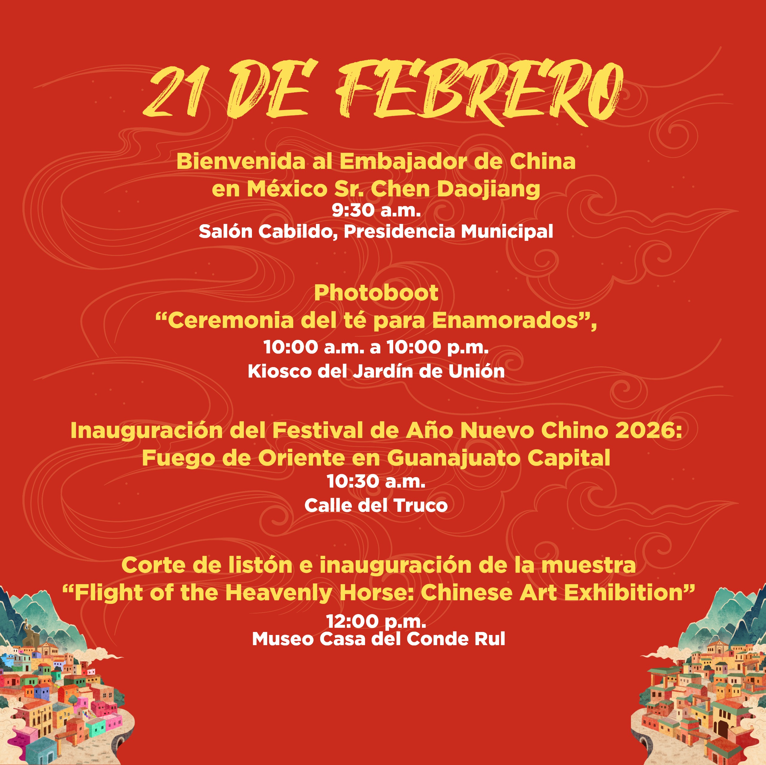 GUANAJUATO, GTO.- Fiel a su tradición, Guanajuato Capital abre sus puertas al mundo a través de la cultura; en este 2026 la ciudad celebrará por primera vez el Festival de Año Nuevo Chino, “Fuego de oriente en Guanajuato Capital”, del 20 al 22 de febrero, con la visión de construir puentes y generar oportunidades de desarrollo turístico para la ciudad.