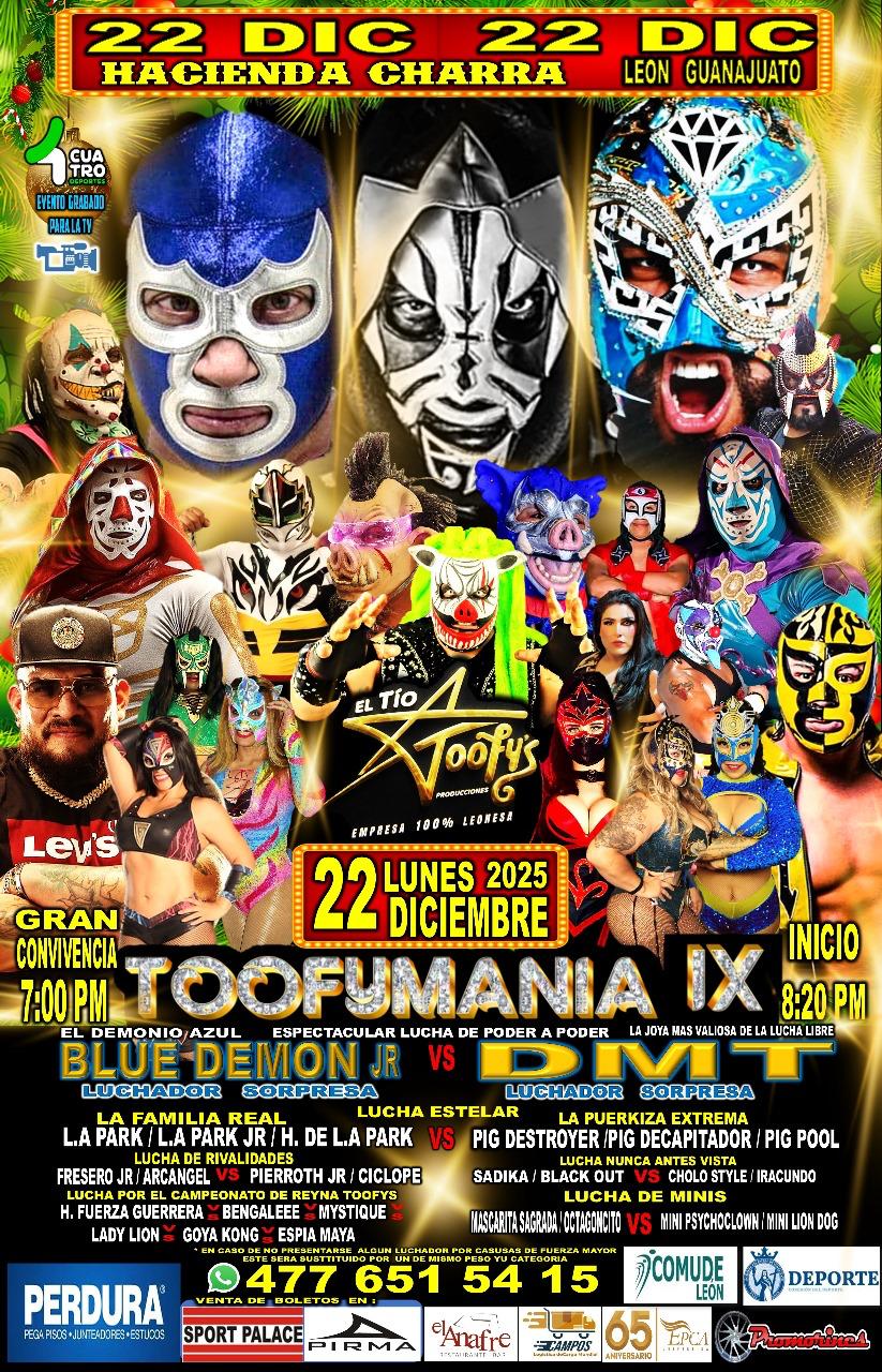 Con esta cartelera, Toofymanía IX se consolida como uno de los eventos más importantes de lucha libre en Guanajuato, ofreciendo emoción, tradición y espectáculo para cerrar el 2025 con energía.